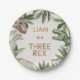 Rustic Green Dinosaur Three Rex 3rd Birthday Paper Plate