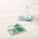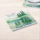 Rustic Green Forest Pine Trees Square Paper Coaster. Personalize with your custom names and wedding details.