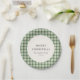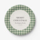 Rustic Christmas paper plates featuring an elegant design the editable greeting "Merry Christmas" along with your family name and the year over a vintage style gingham pattern.