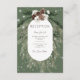 This design features a rustic green pine and pinecone bouquet on a pine green background with white flowers. It is accented with a white sparkle overlay to illustrate the magic of the beautiful winter holidays. Perfect for a Christmas or winter wedding. This card is part of the Rustic Green Pine Winter Sparkle Wedding Suite created by Simply Farmhouse Press.