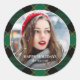 Rustic Green Plaid Faux Gold Photo Christmas Class Classic Round Sticker