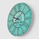 Rustic Green Wood Beach House Black Roman Numeral Large Clock