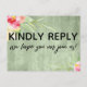 These reply cards turned out just as hoped. The cards were easy to edit. They are compact. Love the simplicity and the combined elegance of the reply cards. Delivery was so quick! The lettering on the reply cards is clear and the quality of the printing is perfect. Couldn't be happier!