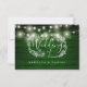 Rustic Green Wood String Lights Floral Script RSVP Card