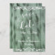wood grain, country wedding, rustic wood, pretty lace-like scrollwork accents, green and white wedding suite, trendy invitation design, beautiful script font, elegant typography, white text on green,, casual wedding style, country wedding style, barn wood, photo of the side of a green shed, warm design elements, high contrast, original photo with dappling from shadows of leaves on side of green building, green wood rustic save the date card