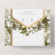 AVAILABLE WITH OR WITHOUT A QR CODE OR DINNER SELECTION OPTIONS. This design features a background of different types of botanical greenery. The white text area is framed in faux gold foil. A monogram with the bride and groom's first initial on the outside flap completes it. Created by Simply Farmhouse Press.