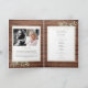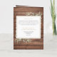 A personalized order of service funeral memorial folded program featuring greenery on a rustic wood panels background. Designed by Thisisnotme©