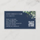 Rustic Greenery Gold Navy Blue Eucalyptus QR Code Business Card