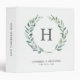 Rustic and elegant wedding binder with your monogram inside of a green watercolor painted greenery wreath. Below are your names and wedding date. A modern botanical design that is perfect for a summer wedding. Use this custom binder as a wedding photo album, wedding planner or scrapbook.