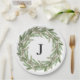 Rustic Greenery Pine Wreath Monogram Holiday Paper Plate