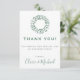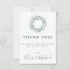 NewParkLane - Personalized Rustic Greenery Wedding Thank You Card, with a beautiful green leaves wreath in watercolor, and an elegant green leaf / foliage pattern on the backside.