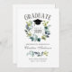 This rustic custom graduation announcement features a watercolor greenery wreath with a black grad cap and grey script typography on a white background. Personalize with your own details - name, class year, school and date. Congrats on your graduation!