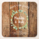 Rustic Greenery Wreath on Barn Wood Save the Date Square Paper Coaster