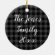 Rustic grey black plaid pattern frosty snow flake ceramic ornament