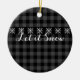 Rustic grey black plaid, snowflak - let it snow ceramic ornament