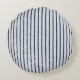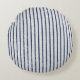 Rustic Grey Linen & Navy Blue Stripes Pattern Round Pillow