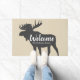 Grey large moose silhouette doormat with the word "Welcome" in white text as well as your family's name. Add some style and fun to your entryway with this rustic bold doormat.