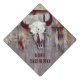 Rustic Grey Western Bull Skull Yellow Sunflowers Graduation Cap Topper