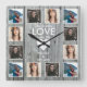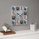 Rustic Grey Wood 12 Photo Collage Anniversary Love Square Wall Clock