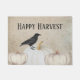 This fall doormat features a rustic design with soft white pumpkins, a perched black crow, and vintage-style Happy Harvest lettering. A cozy seasonal accent that’s perfect for welcoming guests throughout autumn, from the first cool days of fall through Thanksgiving gatherings. The neutral tones and rustic texture style make it a versatile choice for both modern and vintage-inspired entryways.