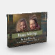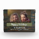 Rustic Happy Holiday Script Custom Family Photo Block. Rustic and modern Christmas photo block with a custom family photo - insert your favourite family photo into the template. The background is rustic dark wood. Personalize the ornament with your family name, names, year and add your favourite photo.