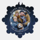 Happy Holidays Photo Christmas Ornament Card - Rustic Blue Wood Print Background. This is a greeting card that is also an ornament.