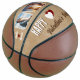 Rustic Happy Valentine's Day 2 Photos Basketball. Personalized gift basketball featuring 2 photos, cute hearts, names and year on a beige rustic background. Add your names, 2 photos and year and make a lovely gift for your boyfriend who loves sports.