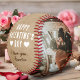 Rustic Happy Valentine's Day 2 Photos Boyfriend Baseball. Rustic personalized baseball featuring 2 photos, modern and trendy typography saying Happy Valentine's Day, white hearts and name on a beige rustic background. Add your name and 2 photos and make a lovely gift for your boyfriend who loves sports.