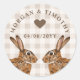 Rustic Hare Bunnies With Names And Date Wedding Classic Round Sticker