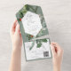 ALSO AVAILABLE WITH A QR CODE TO SCAN IN THE RSVP AREA OR WITHOUT DINNER SELECTION OPTIONS. This wedding invitation design features a beautiful frame of winter pine, holly, eucalyptus and other greenery with red holly berries. The background is a soft sage green that's distressed with white. Created by Simply Farmhouse Press.