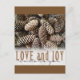 Festive, rustic pine cones accentuate this classic, elegant design wishing holiday Love and Joy.