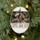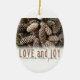 Rustic Holiday Love and Joy Pine Cone Ceramic Ornament