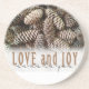 Rustic Holiday Love and Joy Pine Cone Coaster