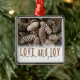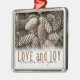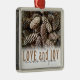 Rustic Holiday Love and Joy Pine Cone Metal Ornament