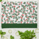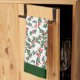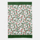 Rustic Holly and Berry Holiday Pattern on Green Kitchen Towel
