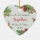 This newlyweds first Christmas ornament has plenty of chic rustic flair. The word " Together" is designed in modern script typography and overlaid on the photo. The back side is with a wood base and Christmas plants - holly and pine spotted on the edge of the ornament with a joyful atmosphere of the holiday season. Easily personalize it with your memorable photo in place of the template photo, as well as the name and year on the back side. What a fantastic way to celebrate your first Christmas together!