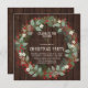 Festive woodland holly wreath and berries with rustic wood background rustic Christmas party invitations. These old fashioned charming country Christmas party invitations are easily customized for your event by simply adding your details in the font style and colour, and wording of your choice.