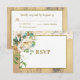 A romantic rustic wedding invitation RSVP design features honeyed pine background with watercolor roses and lace accent. The pine backed text box centred in white for all your reply information has clearl typography in brown.