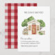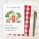 Announce your move with charm! This "We Have Moved" card features a watercolor illustration of a rustic farmhouse with a red door, botanical garden, and a red gingham pattern on the back. Great for sharing your new address in a warm, country style!
