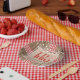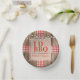 This rustic style design features a wood background with red and white ribbon. On top of that is a burlap texture with red and black serif and handwritten script font which is all customizable to your event, whether an engagement party or couples showers. Celebrate in style with this plate design!