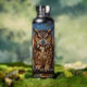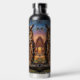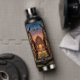 A owl themed water bottle that features a striking Great Horned Owl, rendered in a rich, thick impasto oil painting style. The vibrant textures and warm sunset backdrop create a cozy, rustic atmosphere that is perfect for nature lovers and art enthusiasts alike.