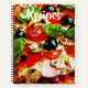 Add your favourite recipes in this colourful recipe book with a close up image of an Italian pizza with tomatoes, black olives, mushrooms and spinach.