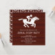 Gallop into the racing season with this stylish Annual Derby Party invitation. Featuring a rustic wood-panel background, a classic white jockey silhouette, and a playful horseshoe pattern on the reverse, this design perfectly captures the spirit of the track. Ideal for hosting a themed event with Mint Juleps and Derby attire, this customizable card ensures your guests save the date for the most exciting two minutes in sports.