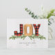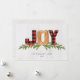 Wish your friends and family a happy holiday season with this unique Joy holiday design. Personalize with your holiday greeting and family name.