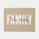 Rustic jute tan faux burlap "Family" custom monogrammed door mat. Add a touch of country cute to your entry way. Makes a great family keepsake. Click the customize it button to customize the typography with your own family name. Note: the burlap in this designs is a printed faux texture.