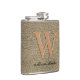 Rustic khaki faux leather monogram name boss hip flask