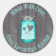 This made with love sticker has a rustic wood background with a teal mason jar. Great for labelling homemade goods! Customize this sticker with your own wording!