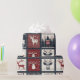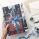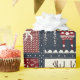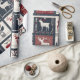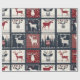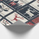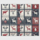 This wrapping paper showcases a knitted patchwork pattern with woodland charm, featuring stylized deer, pine trees, and rustic motifs arranged in a block grid. Rendered in a festive palette of cream, dark blue, and red, it highlights the cozy look of woven stitches and traditional winter craftsmanship. Perfect for lovers of rustic farmhouse style, Nordic holiday designs, and vintage-inspired Christmas décor. A warm and timeless design that brings the spirit of winter forests into the festive season.