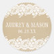 Rustic Kraft and Lace Wedding Monogram Classic Round Sticker