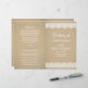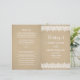 Delicate white lace trim frames a warm kraft background on this rustic ceremony program. "Wedding Of" appears in elegant typography, framing your names and wedding details for a romantic country-inspired design, with a coordinating lace-trimmed backing. Inside pages are fully customizable for your bridal party, ceremony order, and a personal thank you message on the back cover. Programs are printed on text-weight paper and arrive flat, requiring a simple centre fold.